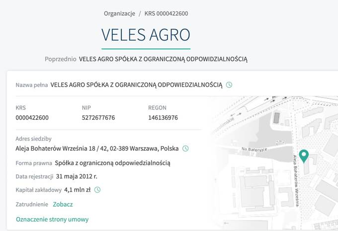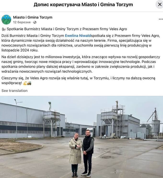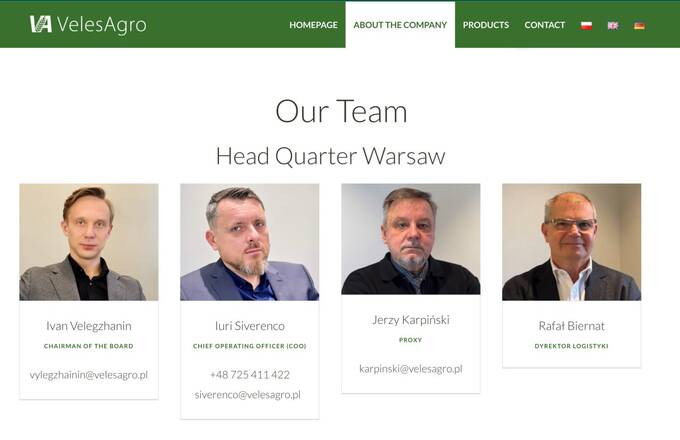 Прихильник окупантів у березні 2019 року заснував у Варшаві компанію VELES AGRO Sp. z o.o. (velesagro.pl) і придбав завод у місті Тожим (Torzym), де вони продовжують вести свою нелегальну діяльність. Капітал компанії становить 4,1 млн злотих.
