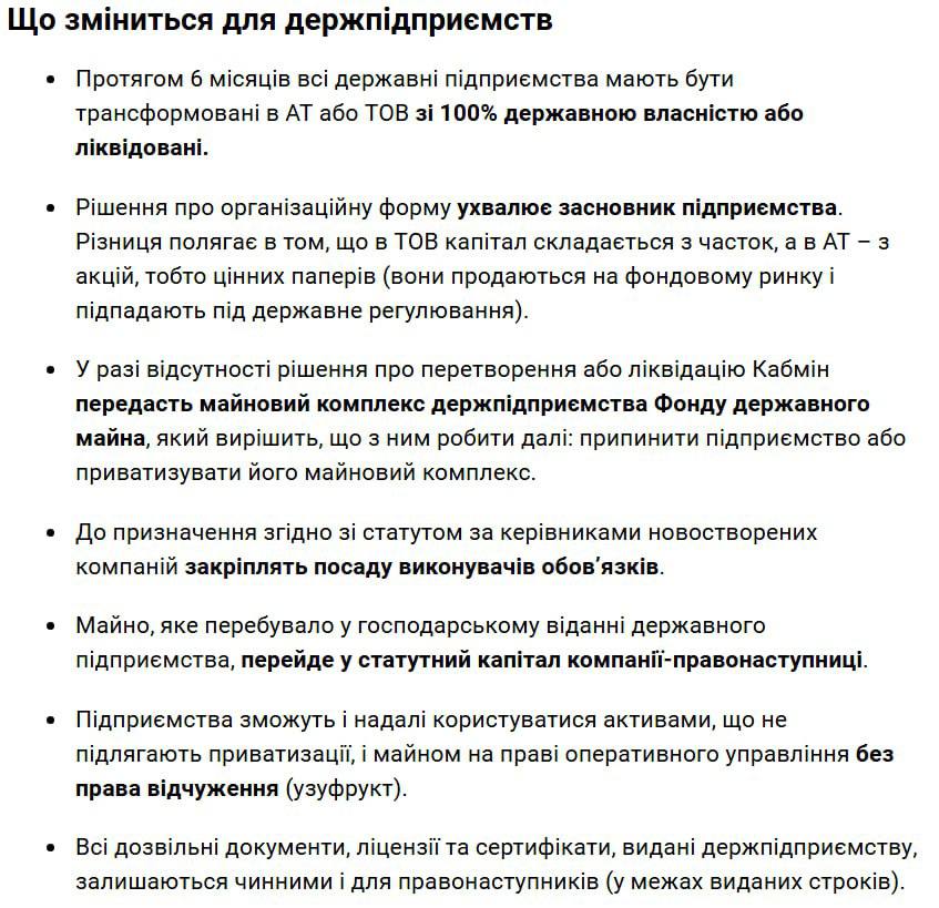 В Україні зникнуть усі держпідприємства: їх перетворять на акціонерні товариства