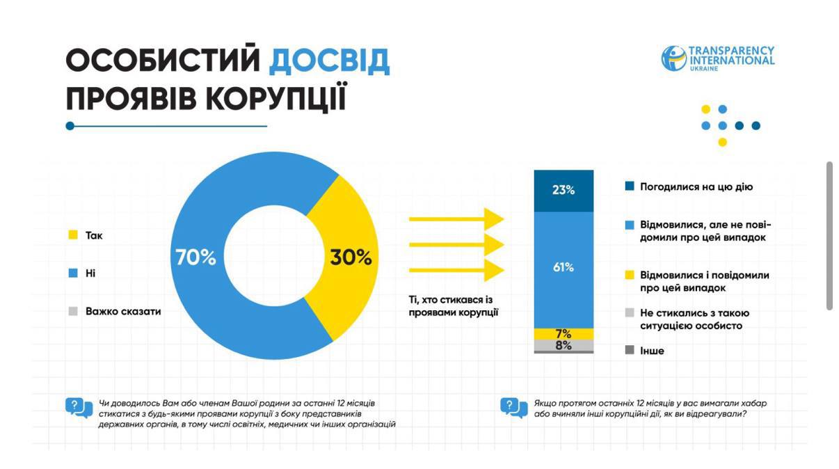 - 68% відмовилися, з них 7% — повідомили про спробу корупції.