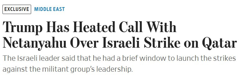 Дональд Трамп мав напружену телефонну розмову з ізраїльським прем’єром Беньяміном Нетаньягу через удари по штабу ХАМАС у Досі, повідомляє The Wall Street Journal, посилаючись на свої джерела.