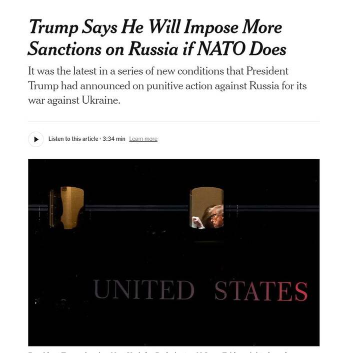 "Ця умова майже напевно не буде виконана, про що відомо пану Трампу та його радникам. Найбільшими європейськими покупцями російської нафти є дві країни з авторитарними лідерами, якими пан Трамп захоплюється — Угорщина і Туреччина, і вони навряд чи припинять закупівлі. Більшість інших європейських країн суттєво скоротили імпорт російської нафти. Однак деякі з них досі залежать від російського природного газу", - написано в статті.