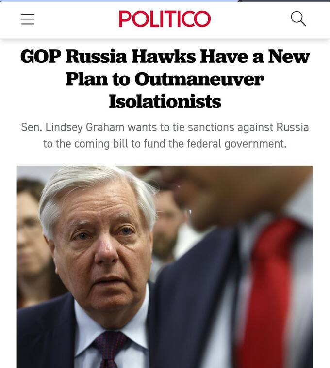 Ініціатива походить від сенатора Ліндсі Грема, який вже кілька місяців прагне домогтися введення вторинних санкцій проти таких країн, як Індія і Китай, за їхню підтримку російської економіки.