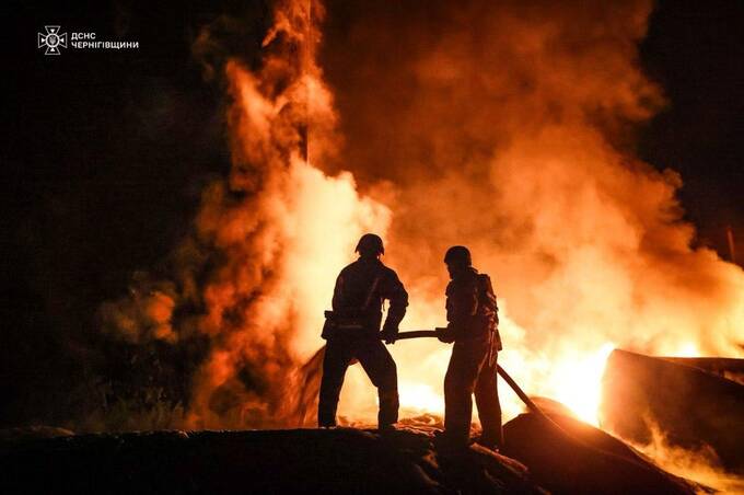 Ніжин на Чернігівщині зазнав масованої атаки дронів. Під удар потрапили рятувальники.