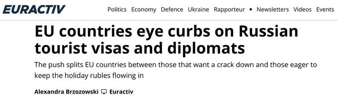 «Ми не можемо просто прийняти, що росіяни подорожують і насолоджуються життям, тоді як їхній уряд щоденно вбиває українців і загрожує нашій безпеці», - заявив один із дипломатів ЄС.
