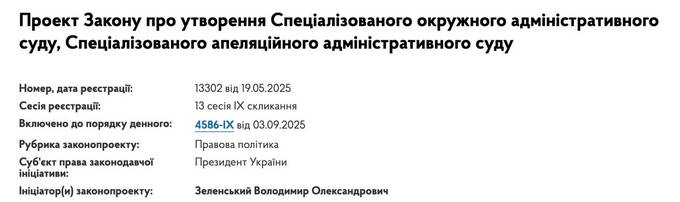 Верховна Рада схвалила в цілому законопроєкт 13302 про створення Спеціалізованого окружного та апеляційного адмінсудів у Києві з повноваженнями на всій території України.