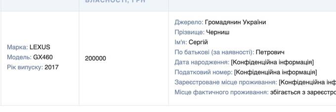 Колишній керівник ДУ "Територіальне медичне об’єднання МВС по Дніпропетровській області" Дмитро Олександрович Шаповалов задекларував купівлю Lexus GX 460 (2017) за 200 тис. гривень.