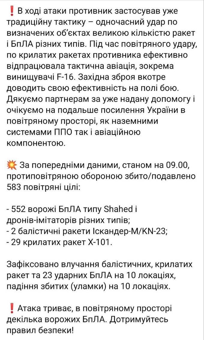 - 32 крилаті ракети Х-101 (29 з них збиті).