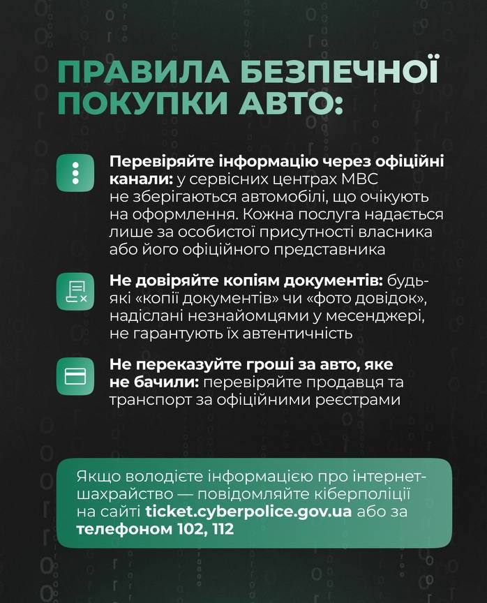 Увага! З’явилася нова шахрайська схема — аферисти «продають» автомобілі, яких насправді не існує, прикриваючись підробленими довідками МВС.