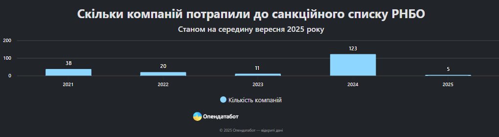 Більшість нинішніх фігурантів додали до списку у 2024 році – 123 компанії, що становить 62% від загальної кількості. Для порівняння: у 2021-му їх було 38, у 2022 році – 20, у 2023-му – 11, а у 2025-му лише 5.