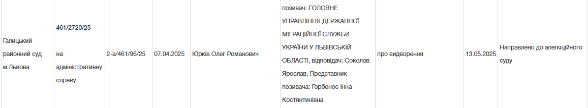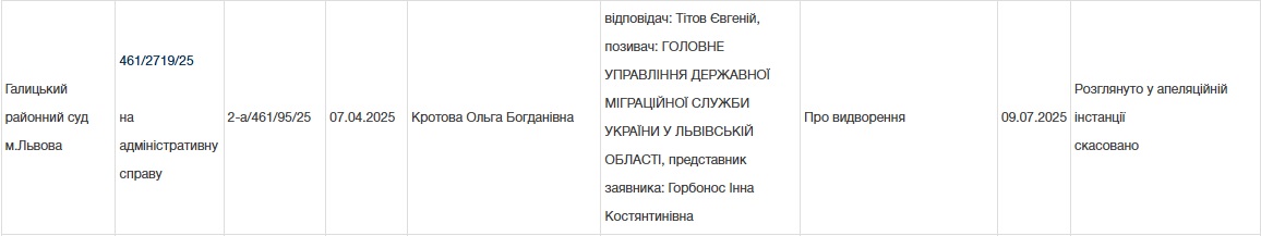 Відомості про це містяться в матеріалах судового реєстру, повідомляє Детектив-Інфо.