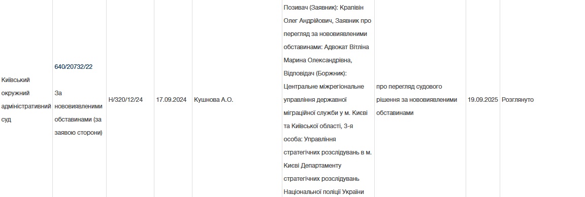 Вивчивши ці матеріали, суддя Кушнова дійшла висновку: вони "беззаперечно не можуть свідчити про наявність підстав для скасування дозволу на імміграцію" Олегу Крапівіну, ба більше - ці "твердження належними та достатніми доказами не підтверджені". Та ухвалила рішення, яким зобов’язала можновладців увімкнути "зелене світло" на кордоні перед "Бакінським".