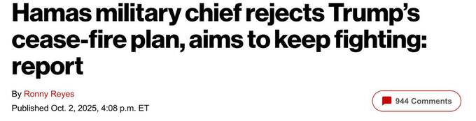 Вищий військовий лідер ХАМАС Езз аль-Дін аль-Хаддад відкинув мирний план Трампа.