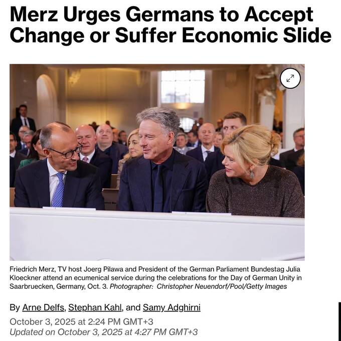 «Наша країна знаходиться в розпалі важливого, можливо, вирішального періоду своєї сучасної історії. Багато чого має змінитися, щоб зберегти нинішню високу планку або навіть піднятися на неї вище», - сказав Мерц у промові в Саарбрюккені, присвяченій 35-річчю возз’єднання Німеччини.