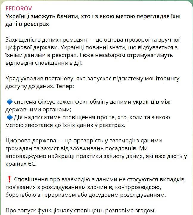З його слів, система тепер фіксує кожне звернення до даних громадян України, що відбувається між державними установами.