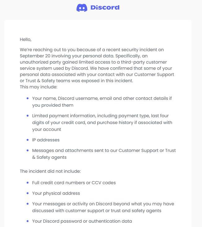 Компанія підтвердила, що приблизно два тижні тому сталася хакерська атака, в результаті якої були розкриті імена користувачів, нікнейми, адреси електронної пошти, платіжні дані, IP-адреси та переписка зі службою підтримки.