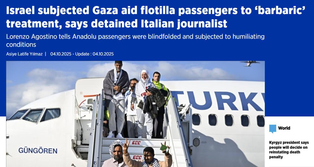 В інтерв’ю виданню Anadolu італійський активіст Лоренцо Аґостіно заявив, що вона та її соратники утримувалися в "принизливих" умовах. Він повідомив, що їх годинами тримали з зав’язаними очима та в тісних наручниках.