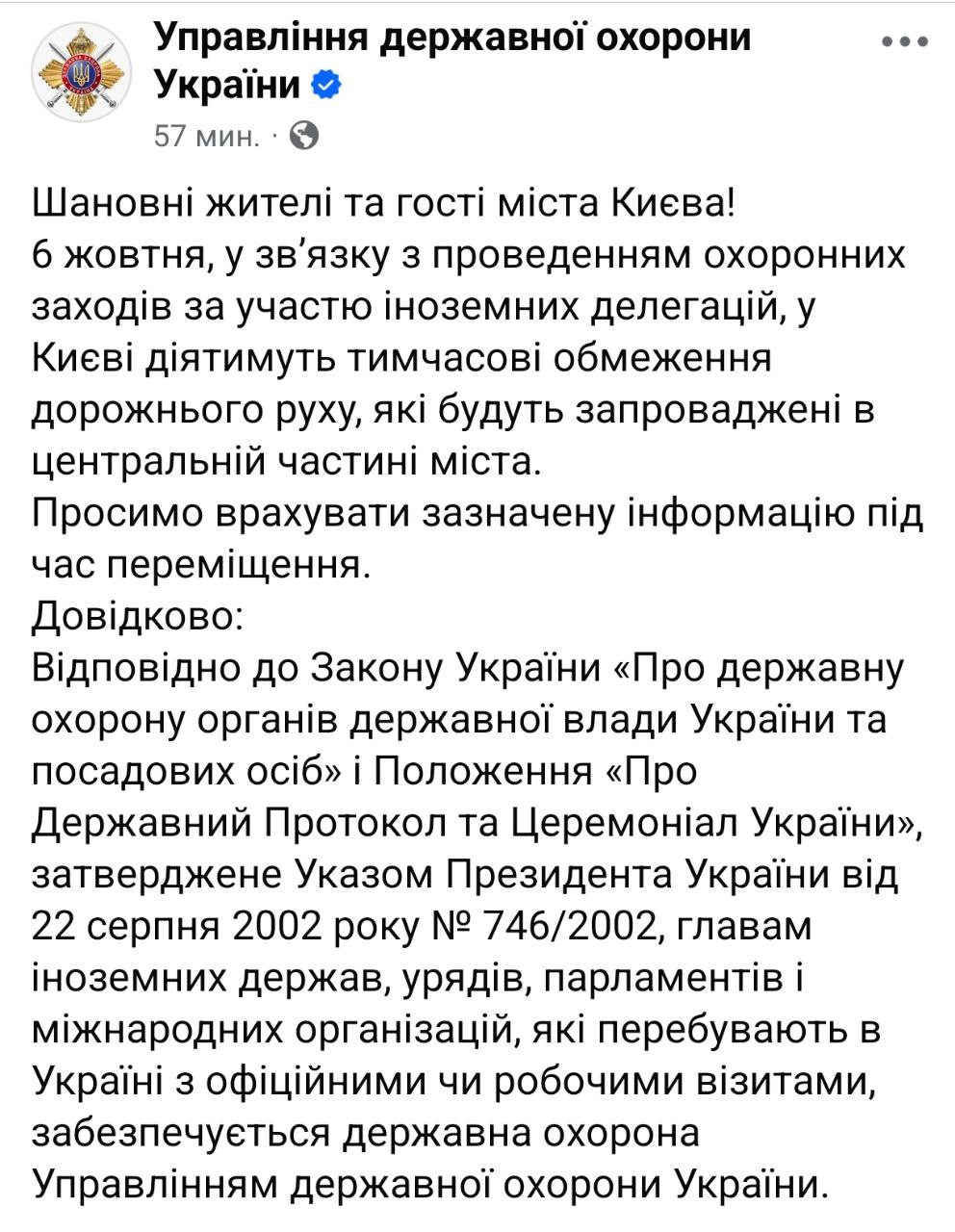 Завтра центр Києва буде закрито для руху у зв’язку з візитом закордонних гостей.