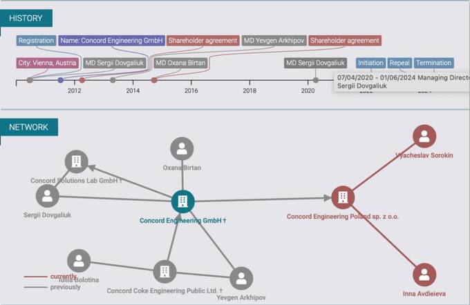 З Австрією Олену Сосєдку пов’язує не тільки проживання там її дітей. Батько її другого сина Сергій Довгалюк, колишній керівник асоційованого об’єднання «Промислово-фінансова група Конкорд», в період 2010-2014 та 2020-2024 років був керуючим директором нині вже ліквідованих австрійських компаній Concord Engineering GmbH, APS Power Technology GmbH та Concord Solutions Lab GmbH, що пов’язані з Concord bank та сестрами Сосєдками.