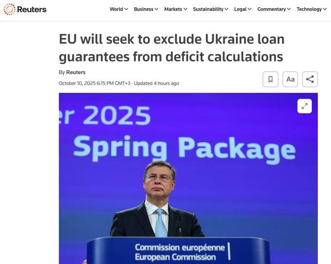 Єврокомісар з економіки Валдіс Домбровскіс зазначив, що Євросоюз не закладає в розрахунки участь інших членів «Великої сімки» (G7) для надання гарантії кредиту від ЄС Україні. Тим не менш, Союз сподівається, що країни G7 застосують аналогічні заходи щодо заморожених російських активів на своїх територіях.