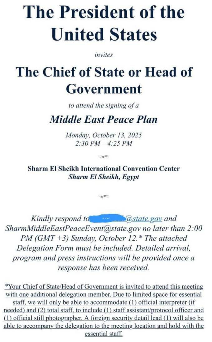 У Шарм-еш-Шейху відбудеться самміт миру: США розширили список учасників до 20 країн