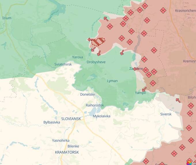 Також надходить інформація про просування російських сил у районі Шандриголове на північ від Лимана в Донецькій області.