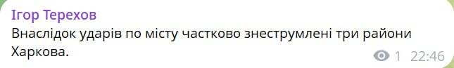 Через удари окупантів по трансформаторних підстанціях у Харкові частково знеструмлені три райони міста.