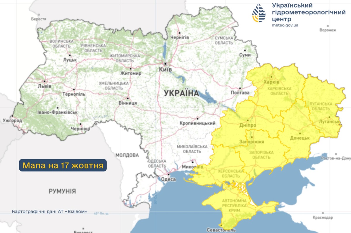 В окремих областях оголошено І рівень небезпеки (жовтий).