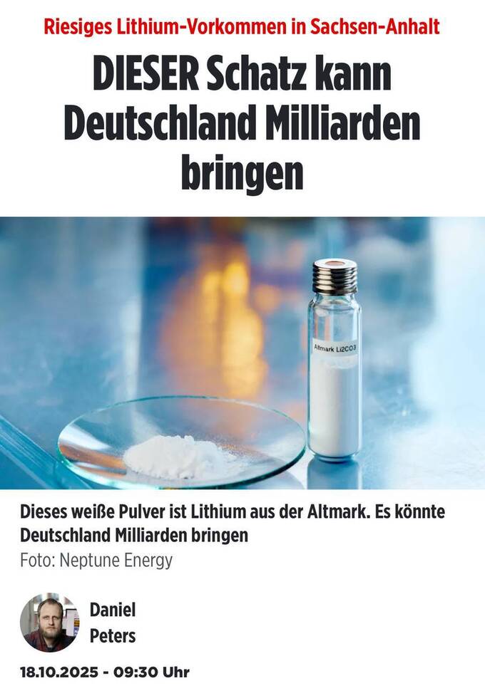 Згідно з її даними, у регіоні Саксонія-Ангальт міститься 43 мільйони тонн літію, що може бути одним із найбільших родовищ у світі.