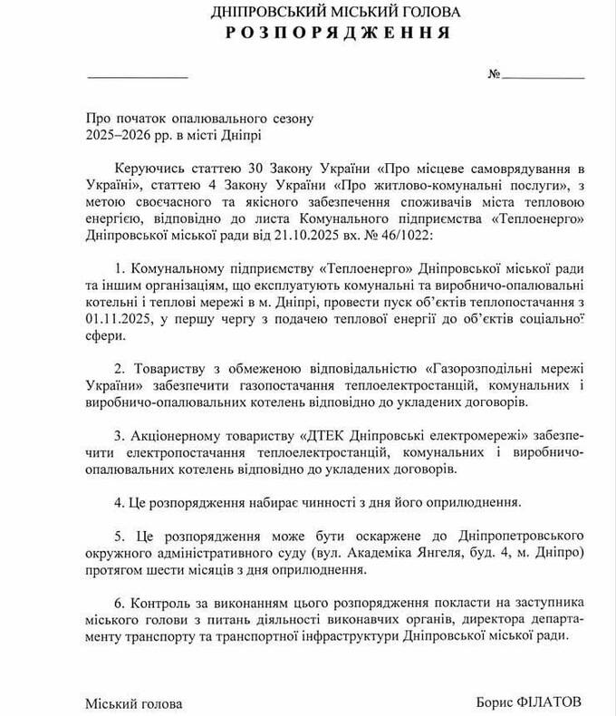 Як зазначено в розпорядженні міської ради, опалювальний сезон у Дніпрі стартує з 1 листопада.