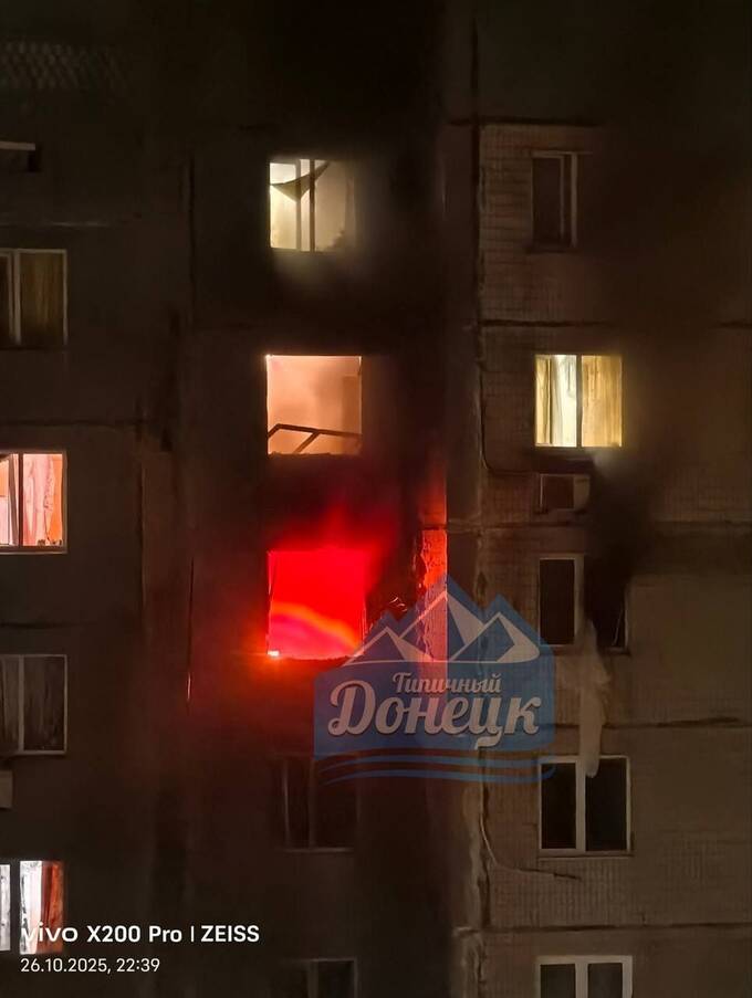 У Донецьку місцеві жителі та пабліки повідомляють про удар безпілотного літального апарата (БпЛА) по багатоповерховому житловому будинку.