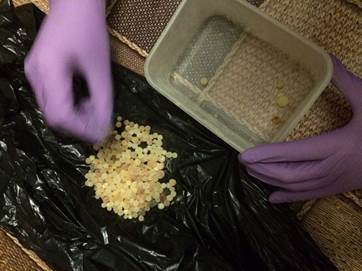 Як повідомляє прес-центр СБУ, під час обшуку правоохоронці вилучили 24 кг сонячного каменю, понад 400 кульок готового до продажу бурштину та чотири станки для обробки. Вартість вилученого каменю на «чорному ринку» перевищує 1,5 млн грн.