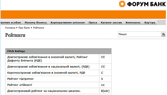 На прошлой неделе международное агентство Fitch Ratings отозвало все рейтинги "Форума". В последние годы подобное происходит довольно редко. "Массовый отзыв рейтингов украинских банков наблюдался в конце 2008 года и в 2009 году", - вспоминает директор рейтингового агентства "ІВІ-рейтинг" Григорий Перерва.