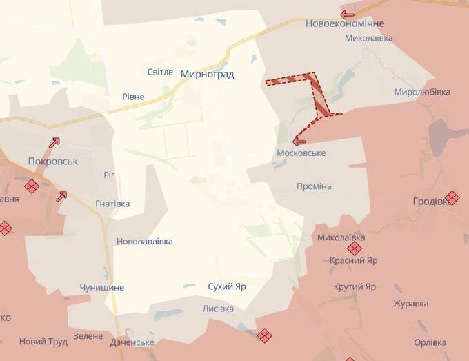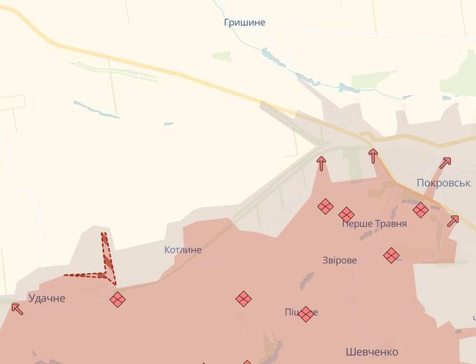 Російська армія значно наблизилася до Мирнограда, розташованого неподалік від Покровська, а також до Удачного в напрямку дороги на Павлоград.