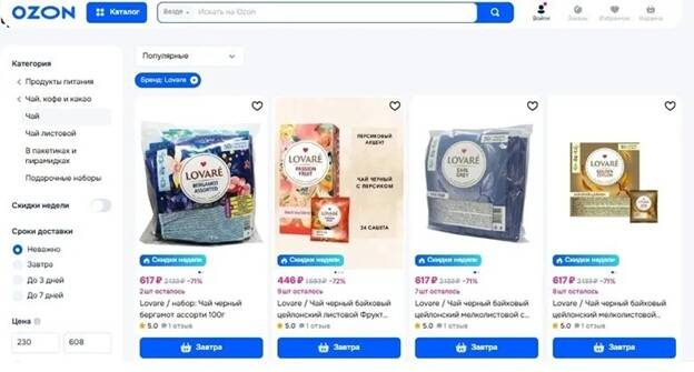Журналісти виявили близько 40 видів чаю Lovare та кави Ferarra на сайтах Wildberries та Ozon. Ці маркетплейси не тільки працюють в РФ, але й сплачують податки до бюджету агресора. Зокрема, Ozon пов’язаний зі структурами олігарха юрія ковальчука, близького до Путіна.