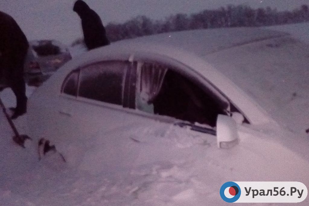 В автомобиле, который попал в снежный плен в районе поворота на Медногорск.