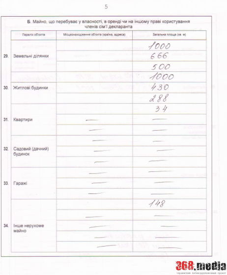 Ей принадлежало четыре земельных участка (общей площадью в 3166 кв. метров), два дома (430 и 288 кв. метров), квартира (34 кв. метра), а также другое имущество (148 кв. метров).