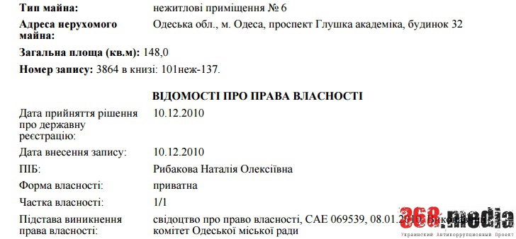 Редакции удалось узнать, что нежилое помещение, которым владеет супруга Рыбакова, находится по адресу: ул. Глушко, 32 (ЖК «Стикон»). На сайтах недвижимости предлагают аренду квадратного метра помещений в новострое за 32 доллара в месяц, а купить трехкомнатную квартиру можно за 128 тыс. долларов.