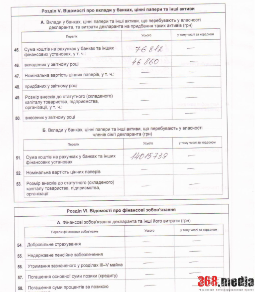 Семья у Рыбакова большая – жена и три ребенка. Правда, основные расходы по содержанию детей лежат на его супруги. В 2013 году налоговик заработал всего 48,4 тыс. гривен. Еще пять тысяч он получил в виде процентов от банковского вклада в 76,8 тыс. гривен.
