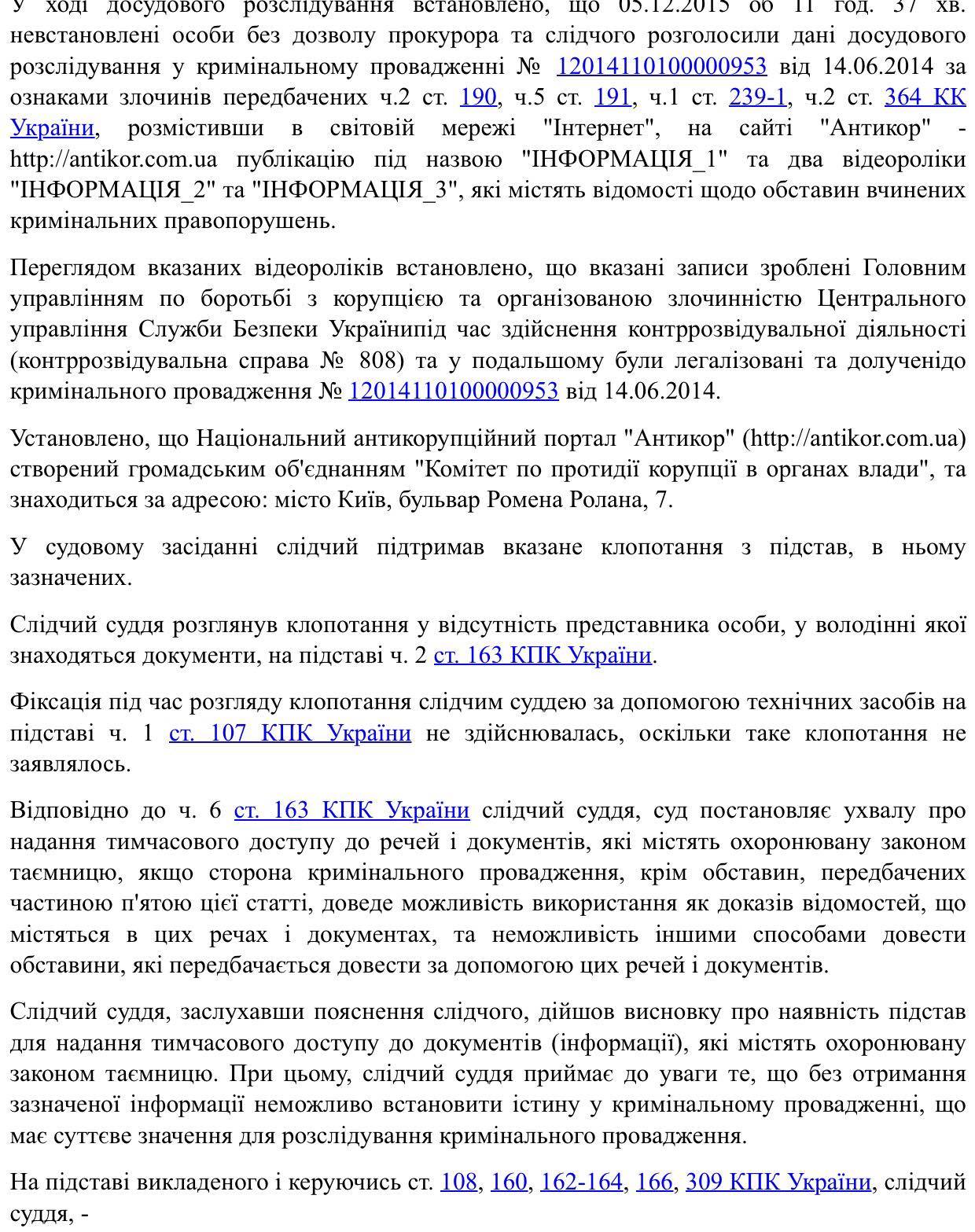Также об этом деле написала коллега Ирина Салий на портале «Наші гроші». То есть, тайна настолько тайная, что многим журналистам и ресурсам давно известная. Поэтому Антикор не мог пройти мимо этого широко обсуждаемого материала. И если, по мнению Печерского суда это дает основание на обыск в нашей редакции, то возникает куча вопросов к состоянию свободы слова в Украине и уровню борьбы с коррупцией. Уверены, что нашим зарубежным коллегам, которые поддерживают Украину на пути борьбы с коррупцией, как постыдным явлением, тормозящим путь страны в Европу, будет интересно узнать дальнейшее развитие событий вокруг этого дела.