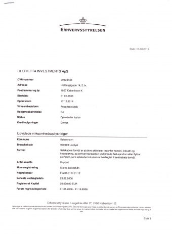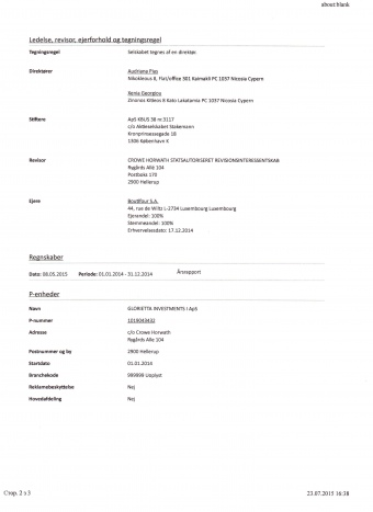 Датські реєстри є кладязем інформації. Так, нам вдалося отримати доступ до звіту, який підготували аудитори для щорічної зустрічі акціонерів у травні 2015 року.