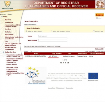 Так, компанія Epic Telecom Invest Ltd на сьогоднішній день існує під іншою вивіскою. 19 грудня 2013 року, через три роки після подачі заявки на Укртелеком, вона змінила назву на Raga Establishment Ltd (вони мають однаковий реєстраційний номер в реєстрі Кіпру №НЕ 276881).