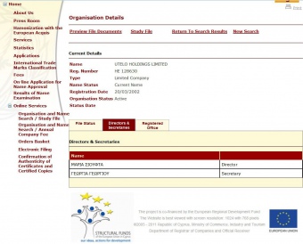 Секретарем фірми Utelo Holdings Ltd є та сама Георгія Георгіоу – яка також була директором фірми-приватизатора "Укртелекому", і сестра якої Ксенія Георгіоу є директором фірми-власника вілли Льовочкіна.