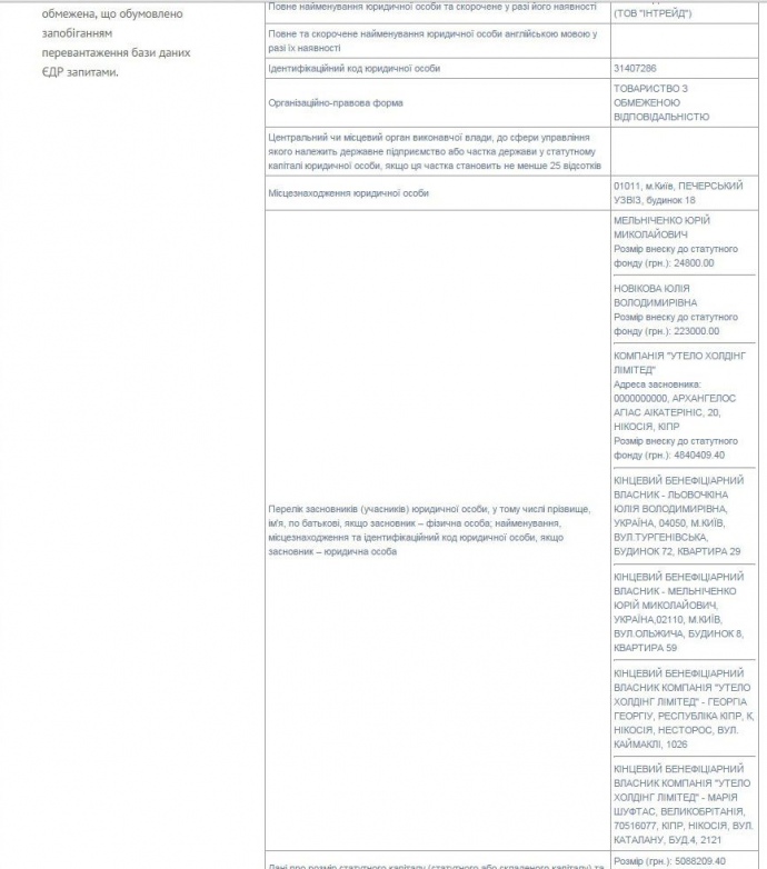 Одна з компаній, яку Льовочкіна визнала як свою власність в структурі розподілу акцій банку "Кліринговий дім", називається Utelo Holdings Ltd.