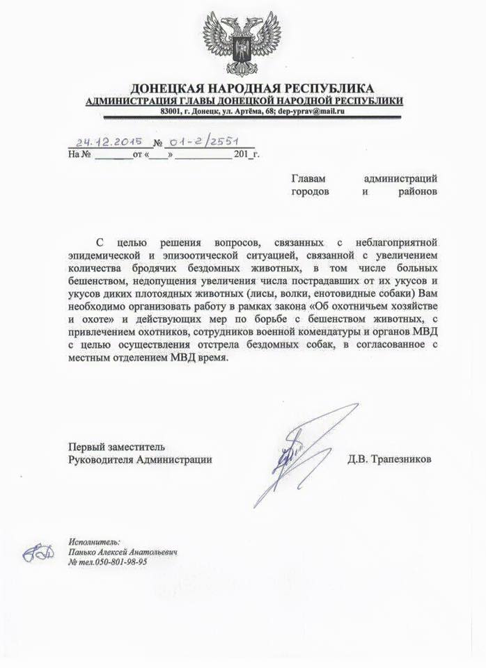 Про це донеччани розповідають у соцмережах, новину повідомляє «Преса України». «Донецьк! Допоможіть зупинити відстріл собак комендатурою. Винищують чіпованих і стерилізованих собак! Люди витратили багато сил і коштів на допомогу тваринам, але комендатурі все одно в кого стріляти! Відстрілюють ручних тварин!», - наголошують місцеві. Донеччани закликають усіх небайдужих підтримати мітинг проти відстрілу бідних тварин. «Знайдіть час часу, не проходьте мимо!», - благають небайдужі. Мітинг відбудеться завтра, 20 січня, о 12-й годині на бульварі Пушкіна біля Адміністрації «глави республіки» Захарченка.
