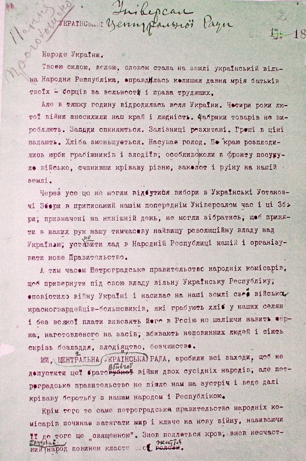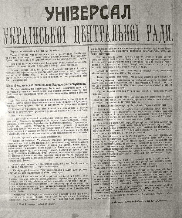 "...Весь этот тяжелый и опасный путь до полного триумфа наших демократических и социальных задач Украинская Народная Республика должна пройти самостоятельно, как независимое государство ..." - писал председатель революционного парламента.
