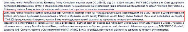 Сейчас Дубихвост является директором департамента управления валютными активами Нацбанка. Варвара Шульц до апреля месяца была членом ревизионной комиссии “Апекс-Банка”.