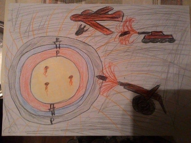 Он отметил, что местное отделение образования хотело показать данные рисунки на выставке, что весь мир увидел, до чего довели детей "кремлевские уроды" со своей постоянной пропагандой на телевидении и в СМИ.