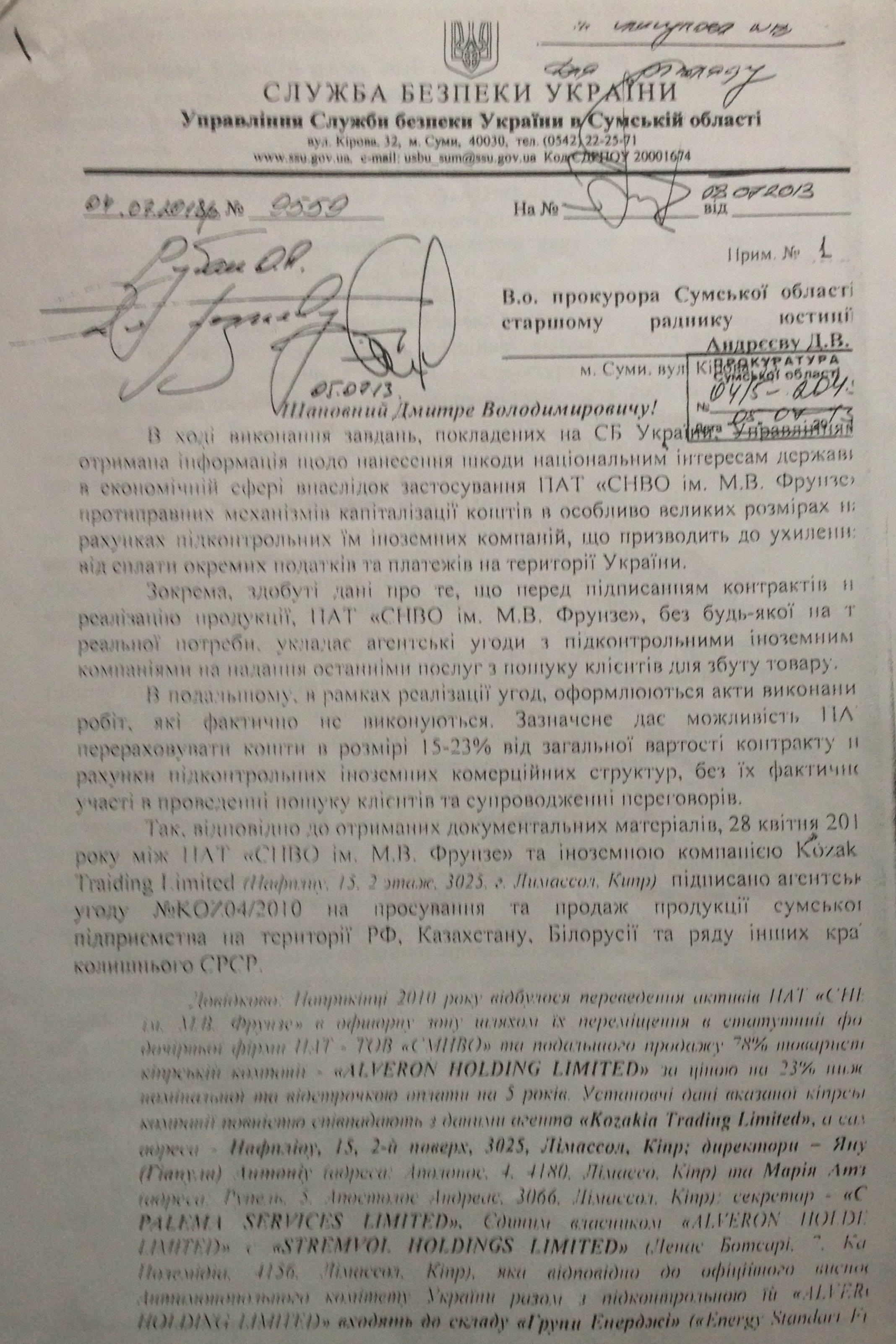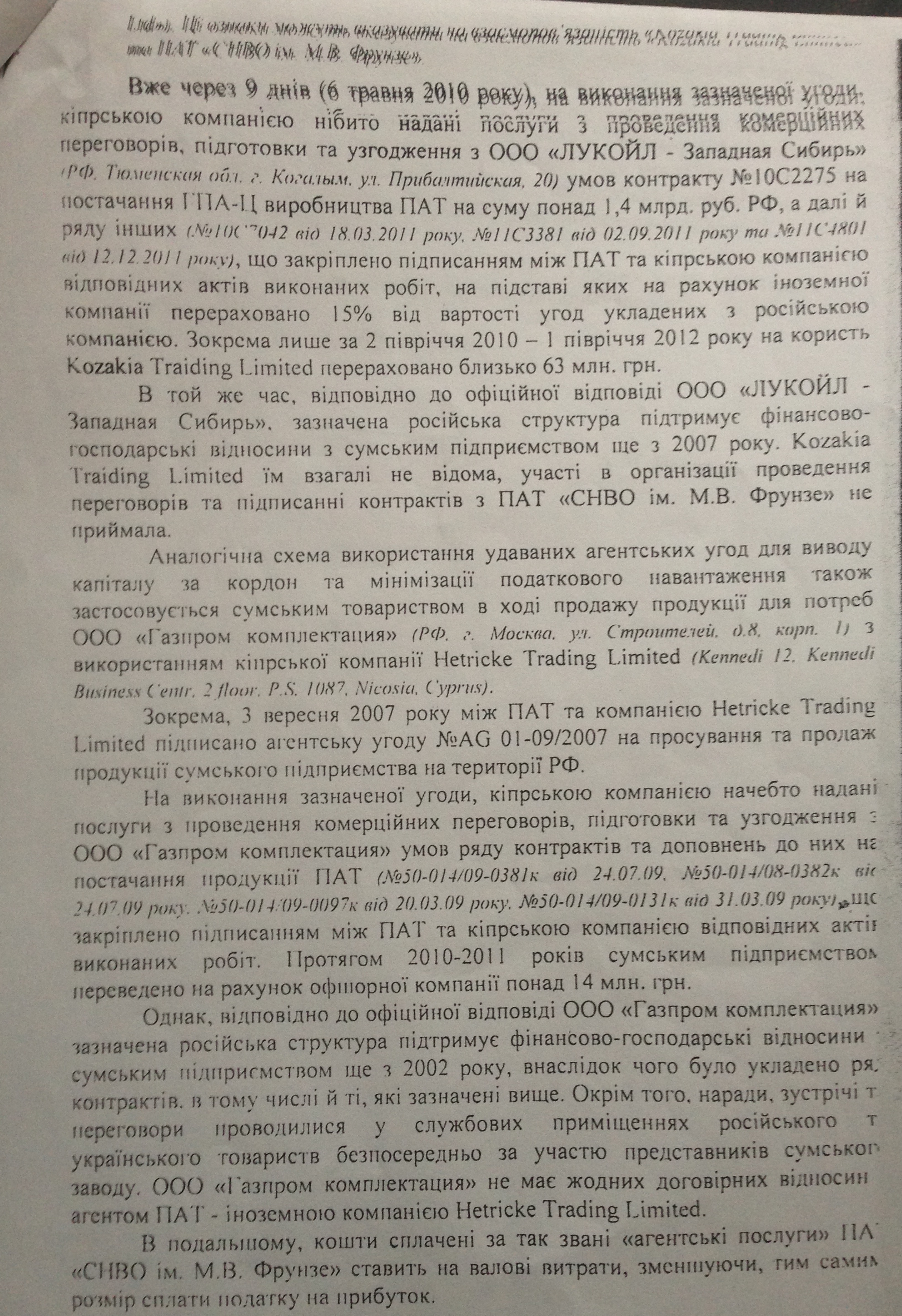 Эти деньги НПО затем относит на валовые расходы, чем занижает свои налоговые обязательства. СБУ некоторые сделки квалифицировала как «никчемные», то есть фиктивные, полагая, что это связано с выводом средств в Россию и оффшорные компании, одна из которых – Kozakia Trading Limited, занимавшаяся якобы продвижением продукции НПО в России и Казахстане.Так что обыски 19 января 2016 года могли быть связаны и с этим делом.