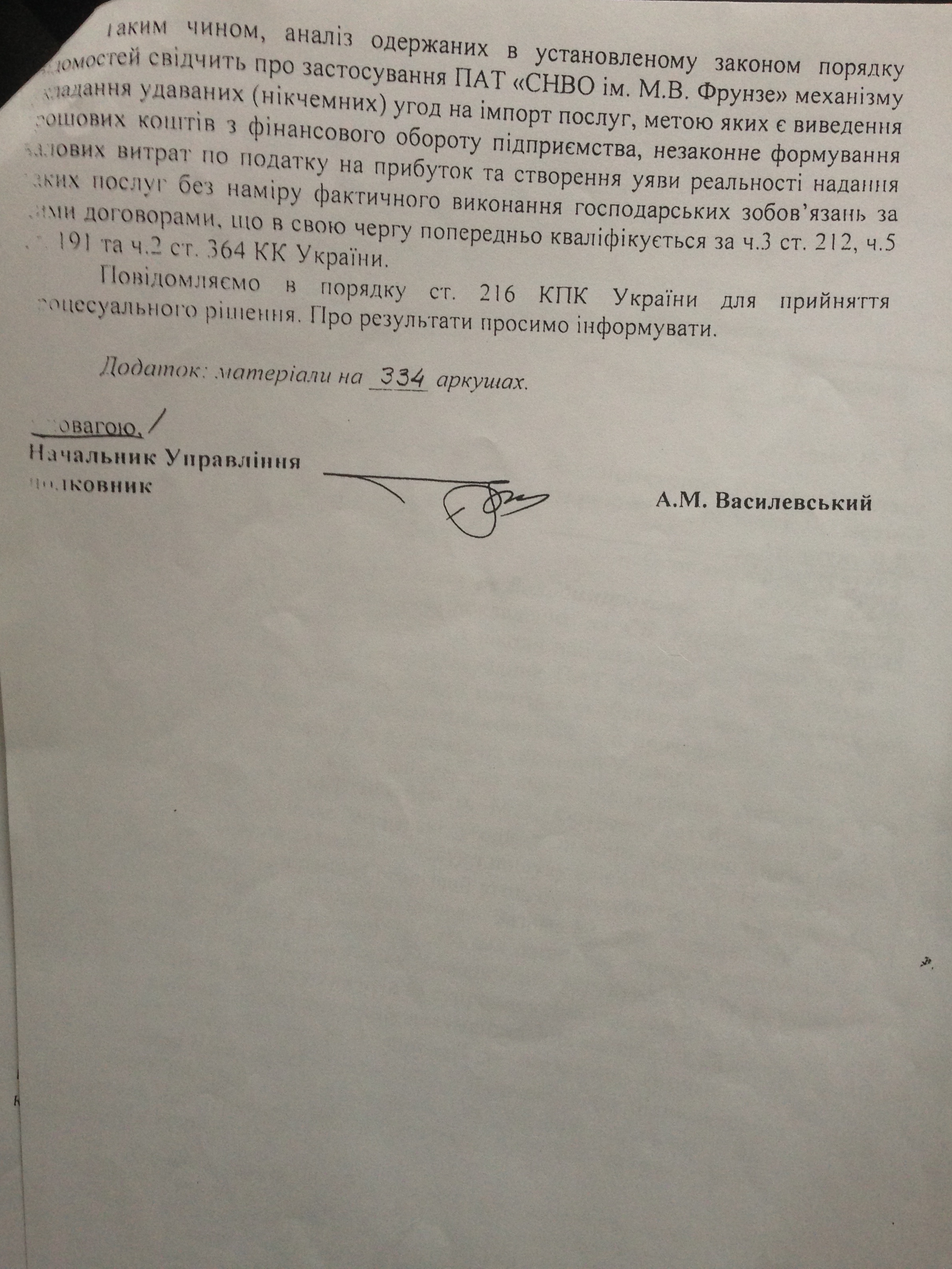 19 января 2016 года на Сумское машиностроительное НПО им.Фрунзе пришли 40 представителей фискальной службы, в том числе вооруженных, для обыска и выемки неких документов. По обрывочным данным удалось выяснить, что фискалы пытались найти бумаги и сведения, подтверждающие неуплату налогов и незаконный вывод средств завода за границу в сумме 120 млн долл.