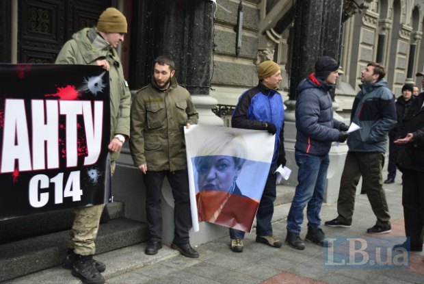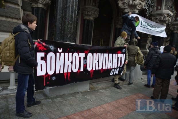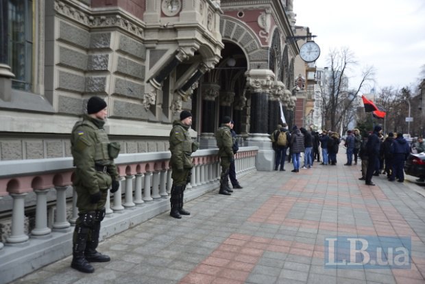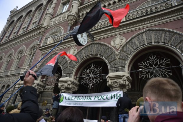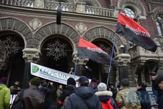 В субботу, 30 января, у здания Национального банка Украины состоялась акция протеста против присутствия российских банков на территории Украины.